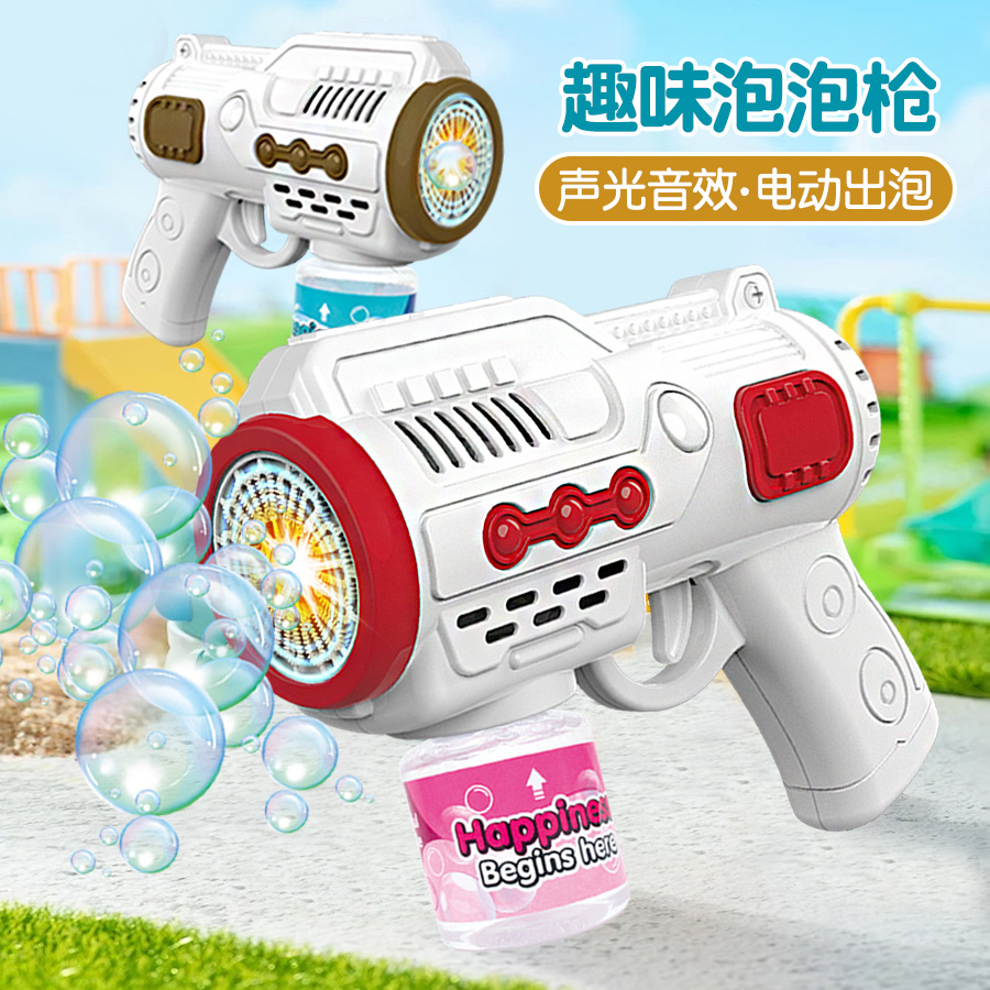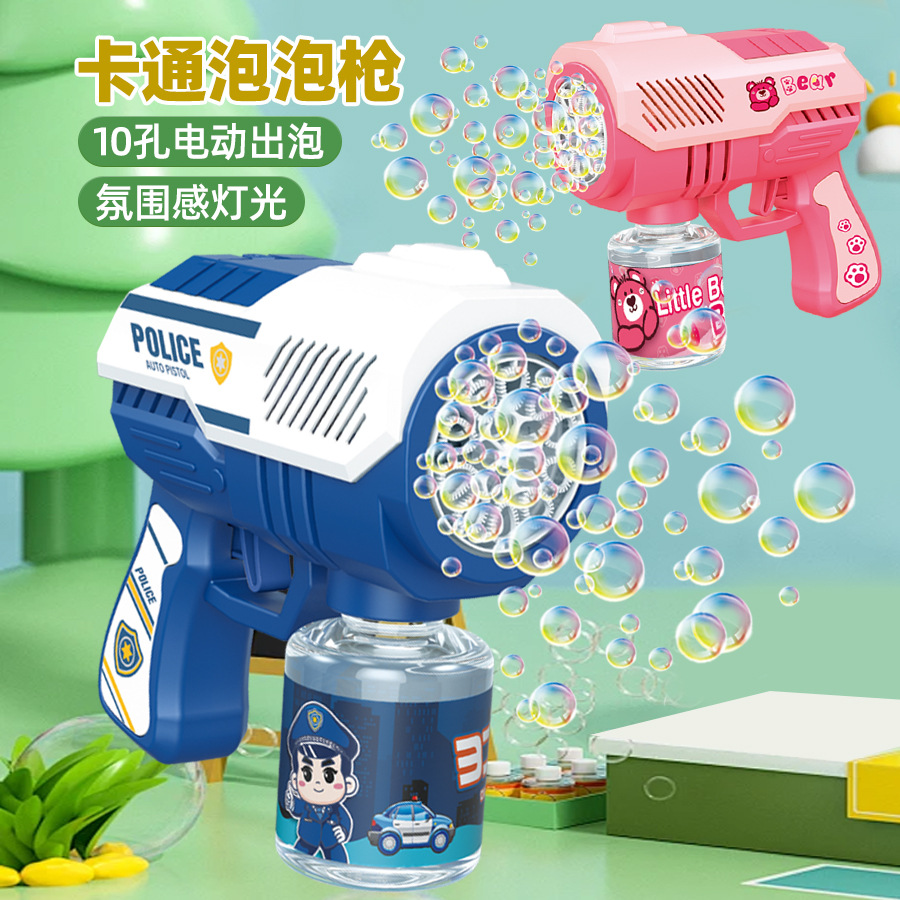 子供用電動特警のカラフルなバブルガンの照明音楽玩具夜市広場に出店して自動バブルマシンを卸売りします。