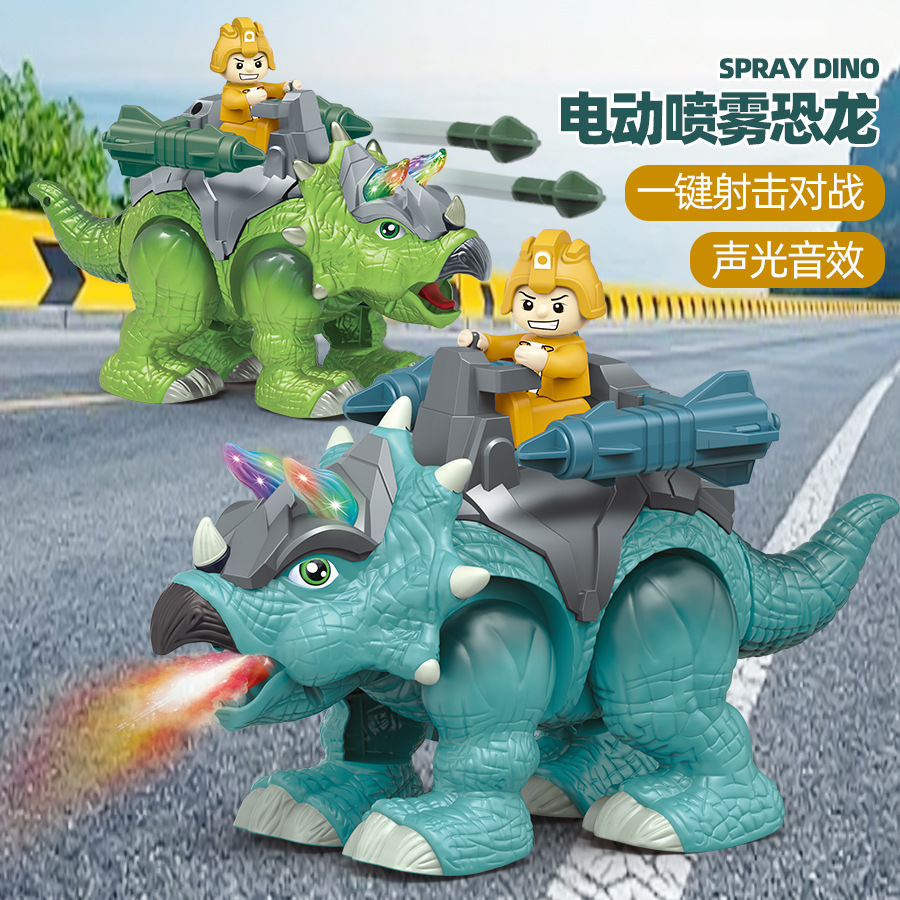 電動スプレー恐竜模型玩具児童音光歩行はクールな三角龍対戦親子交流を発射することができる