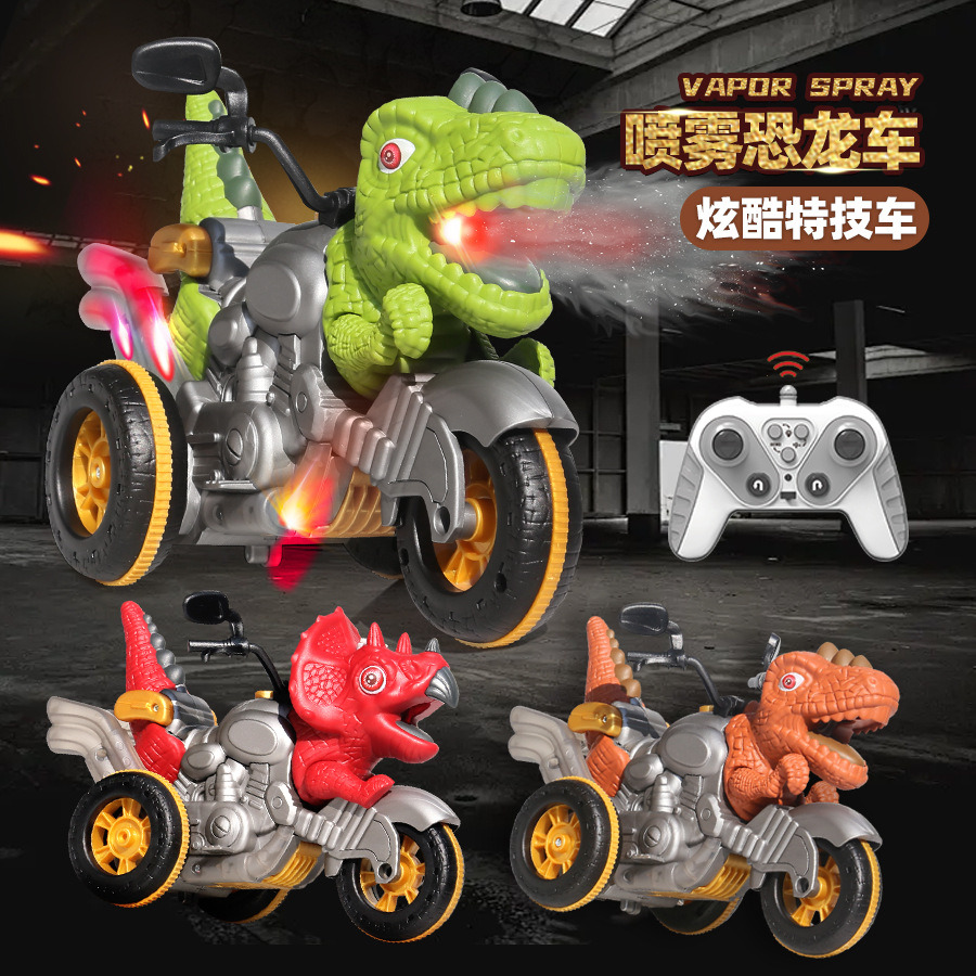 クロスボーダー2.4gリモコンスプレー恐竜スタント車ライト付き覇王龍オートバイ子供電動模型玩具