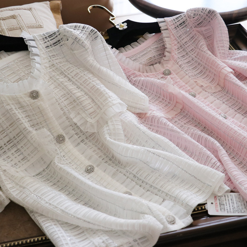 香港ミスター ダイヤモンド シリーズ ~ Xiaoxiangfeng ビーズ ニット カーディガン レディース 2025 夏新作 フレンチ ファッショナブルな半袖トップ