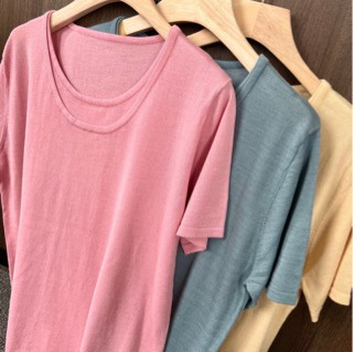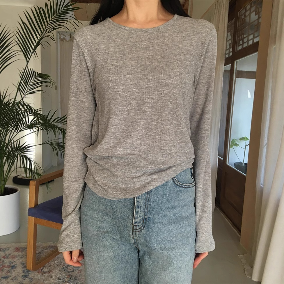 【Merry May】Now mmm 韓国購入 2025秋 無地 ベーシック ラウンドネック 万能 長袖 薄手 Tシャツ