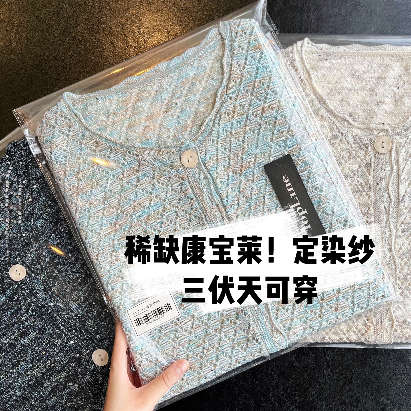 美しいハーバライフトップライン糸リネンコットンリネンレディースかぎ針編み中空トップスパンツスパンコールニットカーディガン女性夏