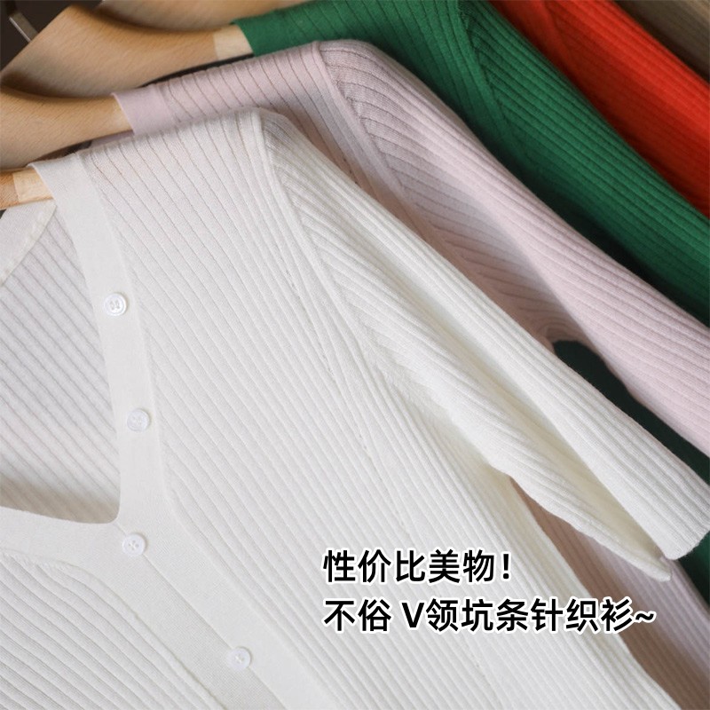 アイランドカントリーTHはコストパフォーマンスに優れています!女性用の素晴らしい痩身Vネックピットストライプ半袖ニットカーディガントップ