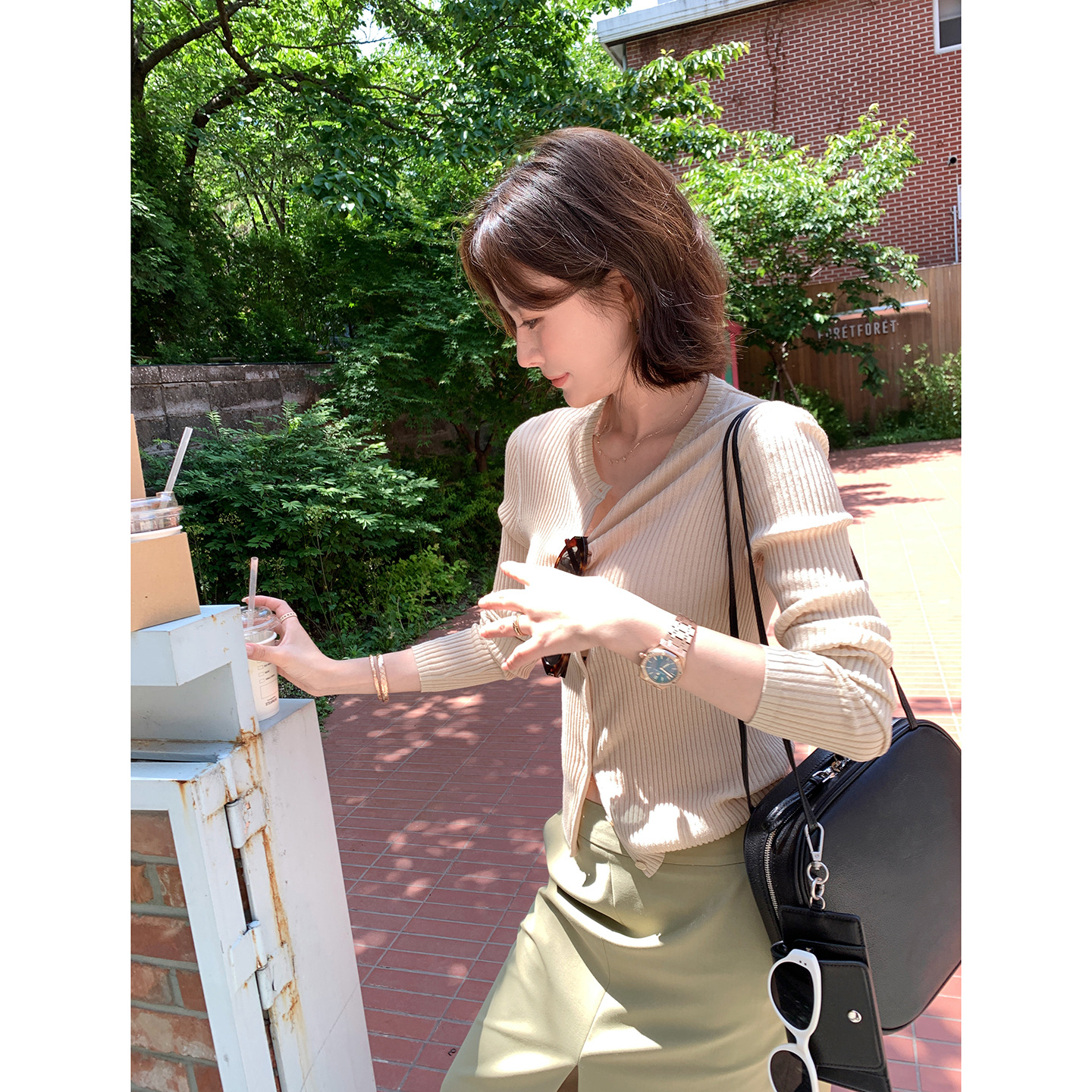 香港米評判宝気質高級軽くてエレガントなモダンリネンコットンカーディガンベストツーピーススーツ女性用春