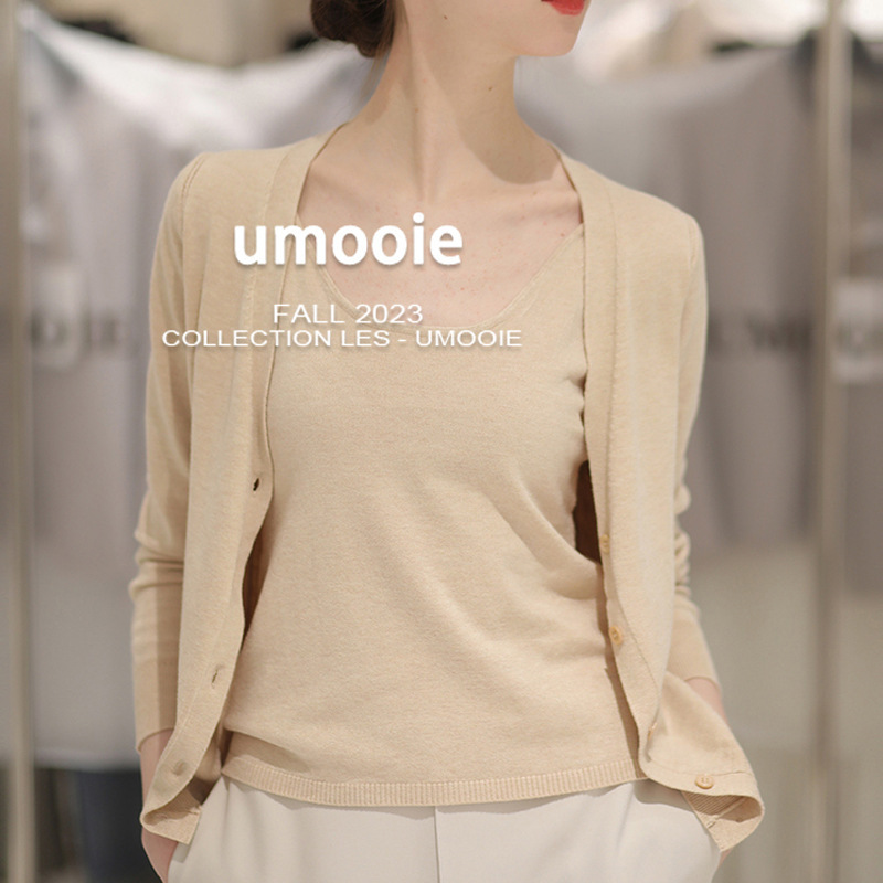 UM夏服新作ニットレディースカーディガンレディースキャミソール2点セットトップスニットニットショートカーディガン