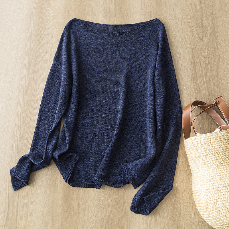 軽くレイジーなワンラインカラーデザイン、ゆったりとしたシルエット、和紙糸のドライで通気性のあるストライプセーター