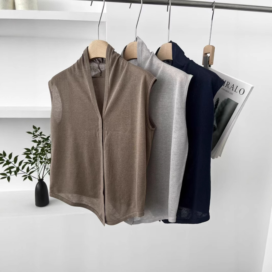 CHAO級おすすめ!パイル襟Vネック快適リネンベスト2025夏快適ゆったり控えめベスト