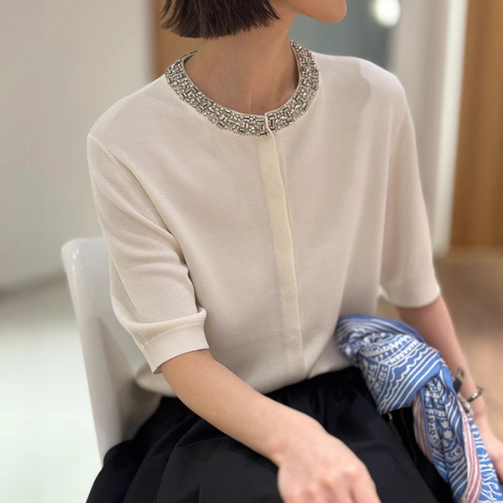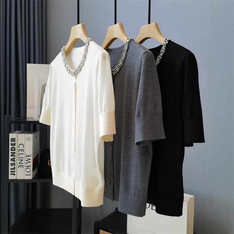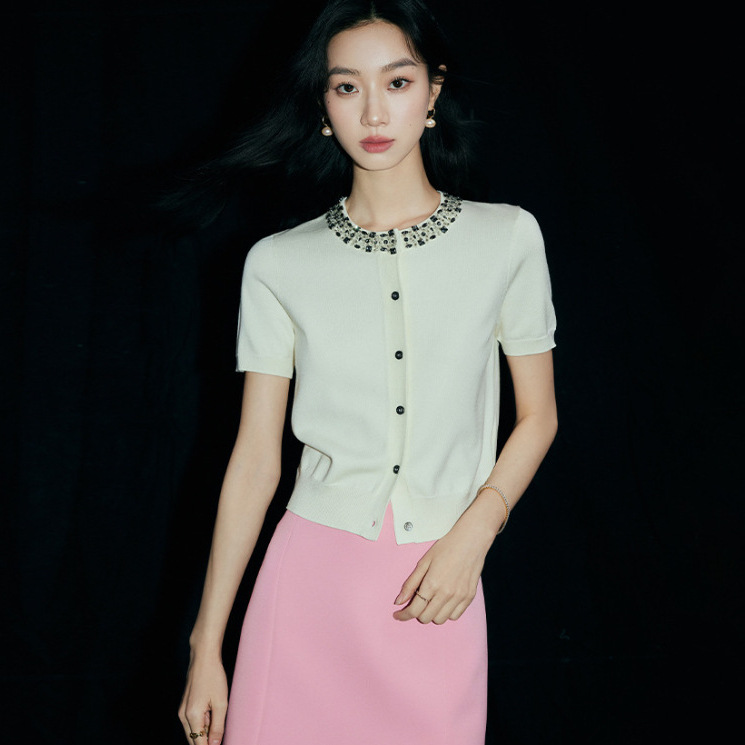 匠心白篙级珠宝系列~镇场焦点重磅钉钻短袖小开衫