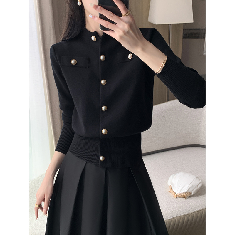 FT GUOGE果兄家の黒いニットカーディガン女性2025春の新商品はとても綺麗で、着痩せしています。