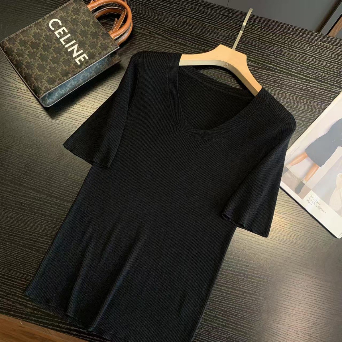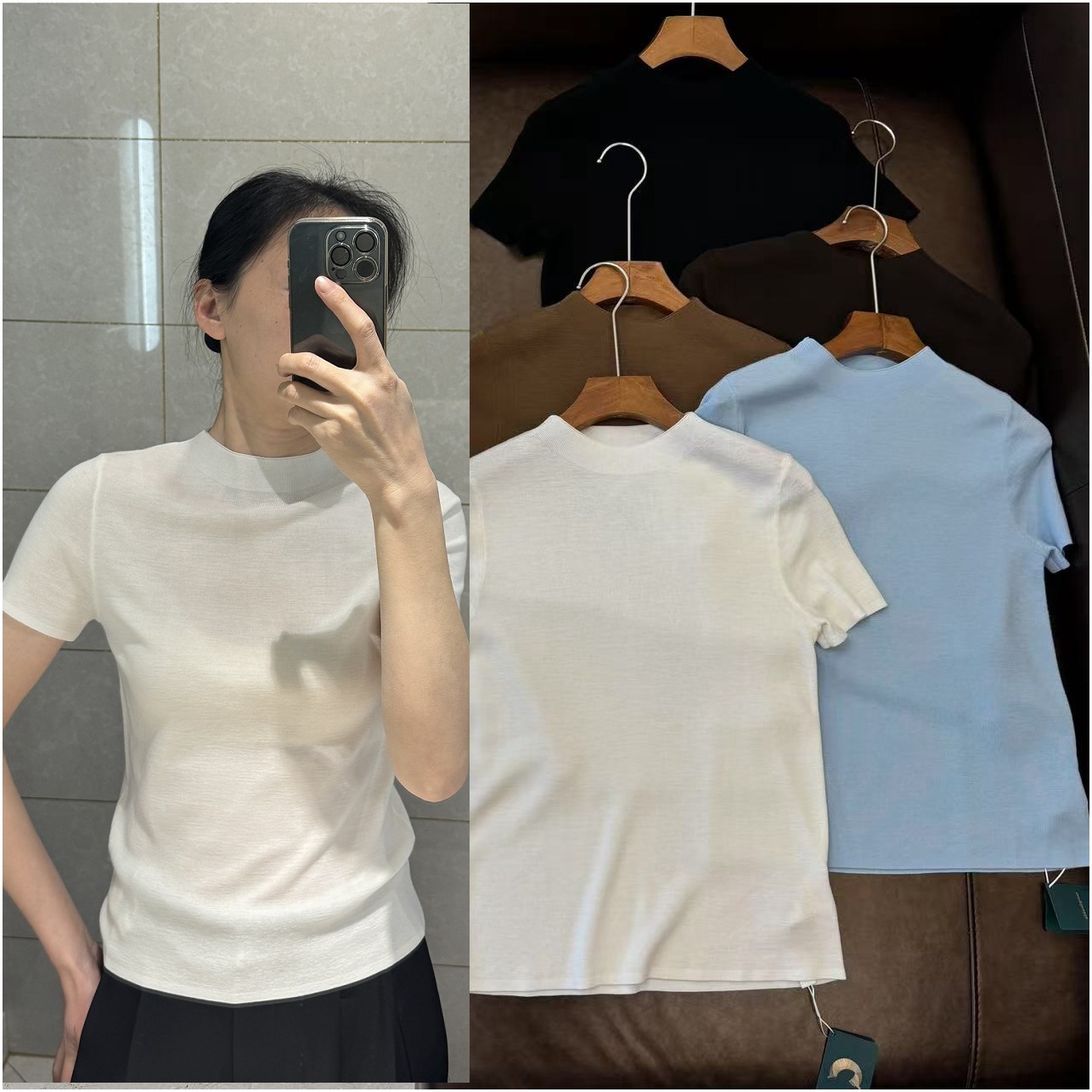 人の手の数点 ~ 気質の半高襟。揚子紗四平針、半袖tシャツ。メリノウール。