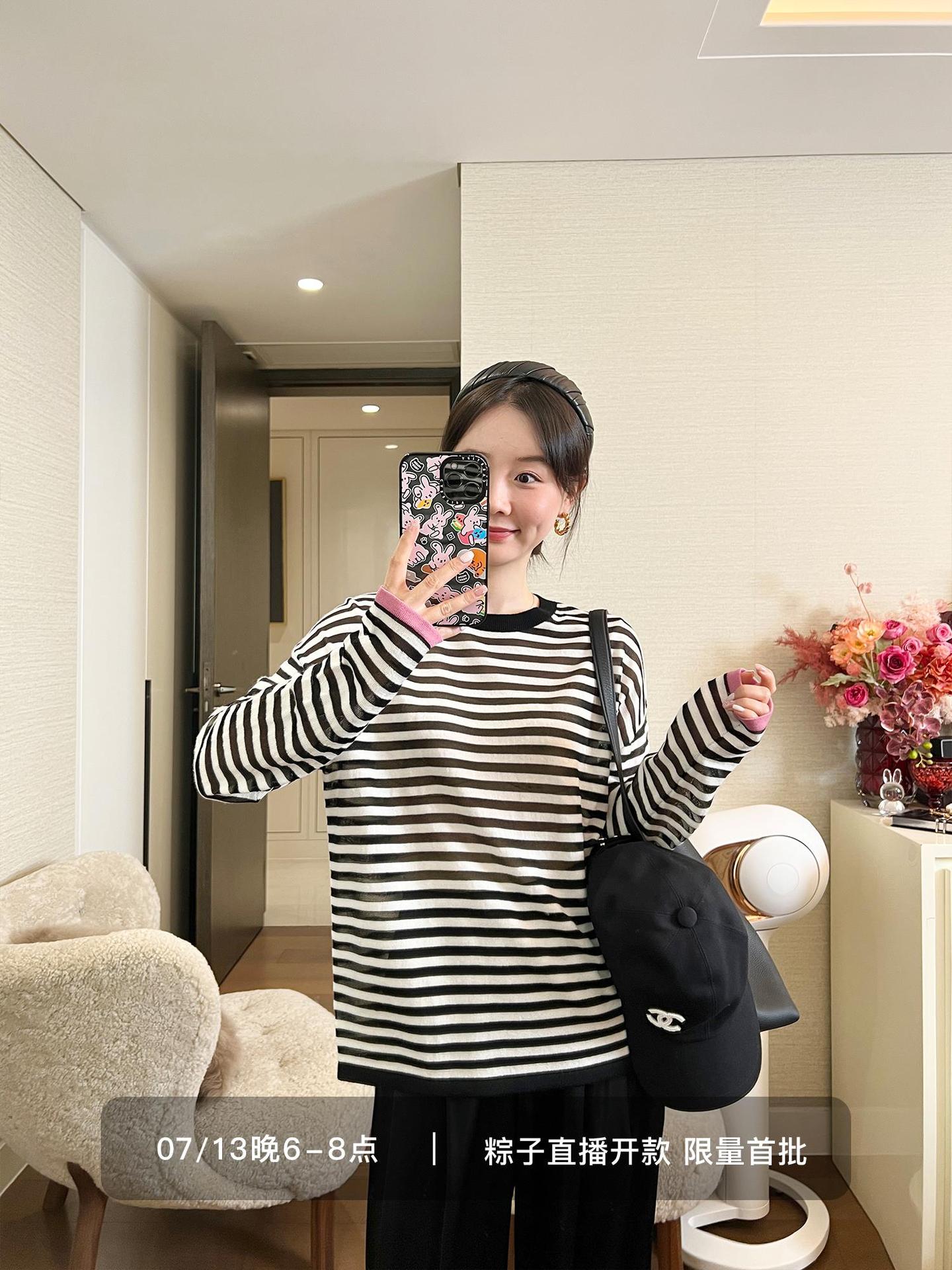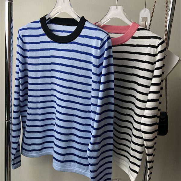 港米【良い品質でリピーターを作る】ストライプの襟元の皮が痩せているウールのニット長袖の上着
