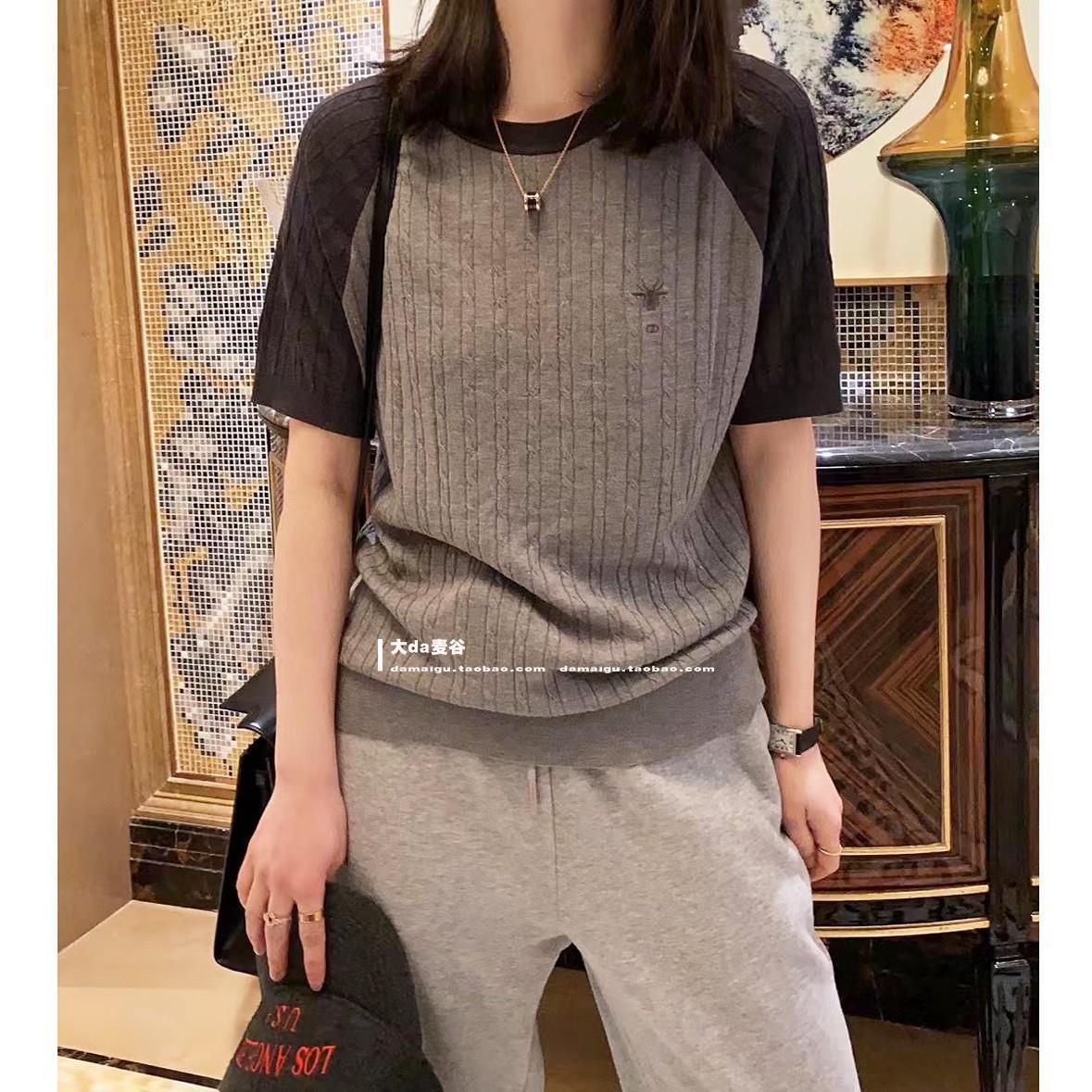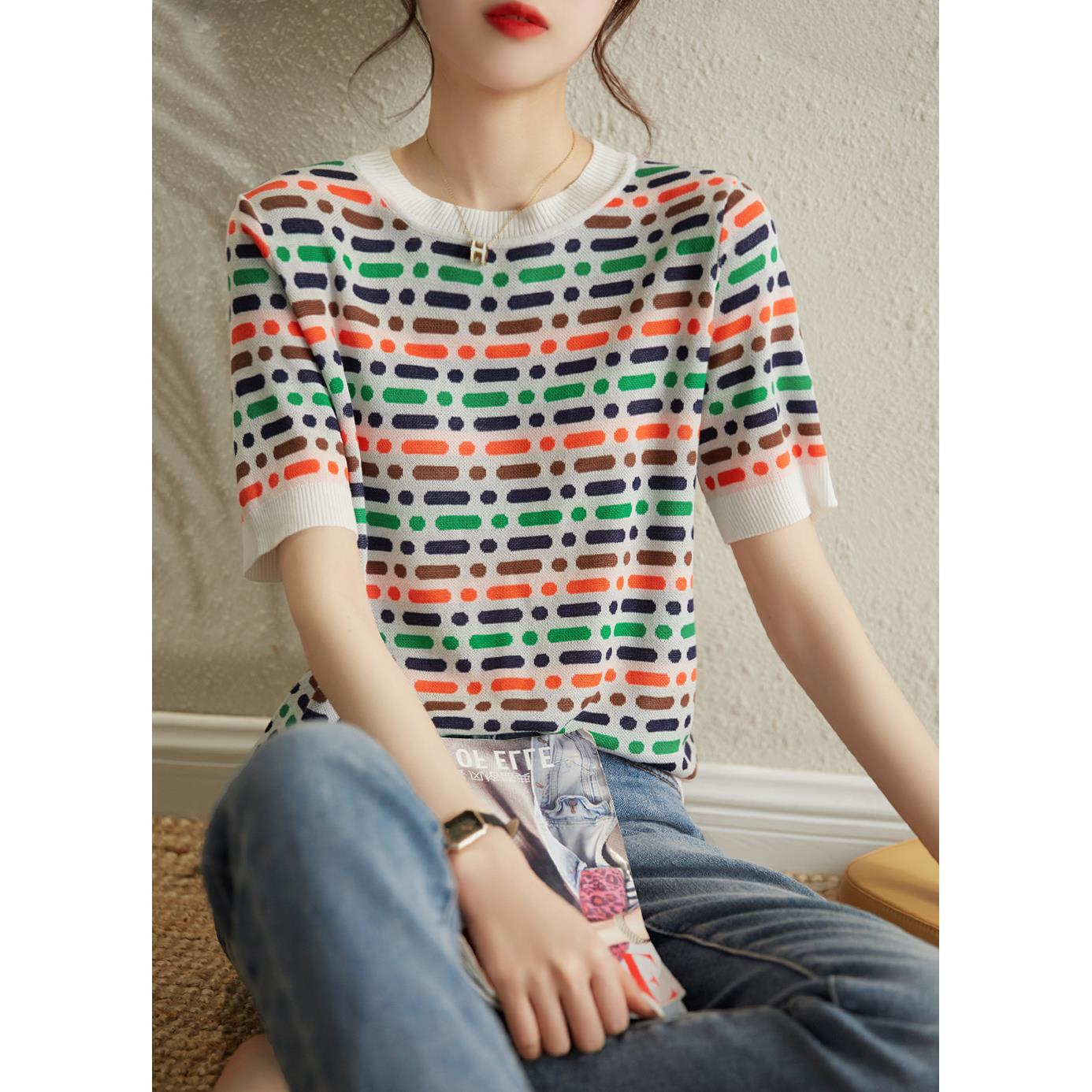 香港米【良い品質でリピーターを作る】丸首娟糸衝突色ニットtシャツ女夏