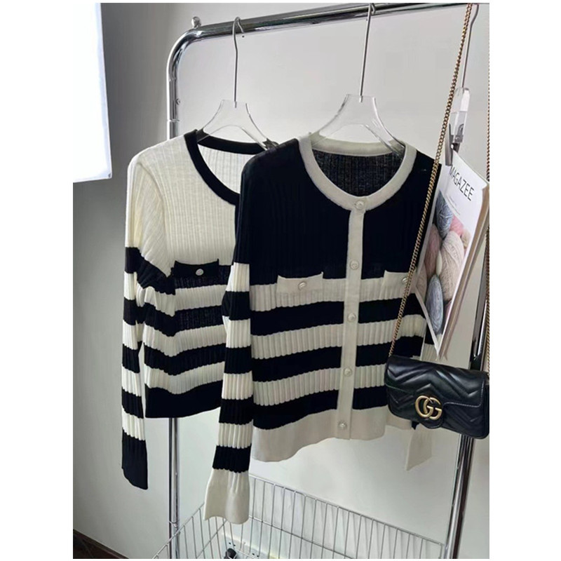 ストライプの色のセーターのコートの女性2023年秋の新型の復古の小さい香りの風の単列は短いタイプのニットのカーディガンを掛けます。