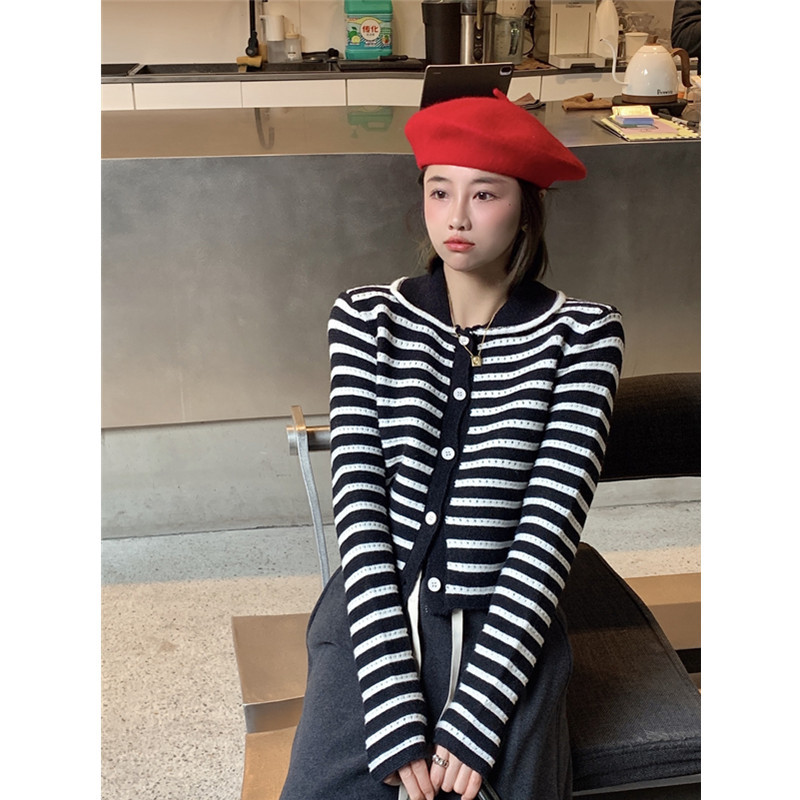 香港米【良い品質でリピーターを作る】ニットカーディガン秋女子長袖丸襟デザイン上着小衆2022新