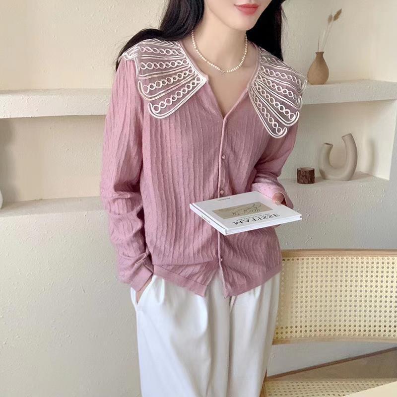 港米【良い品質でリピーターを作る】レース襟ウール長袖ニット純色ジャケット秋の新作