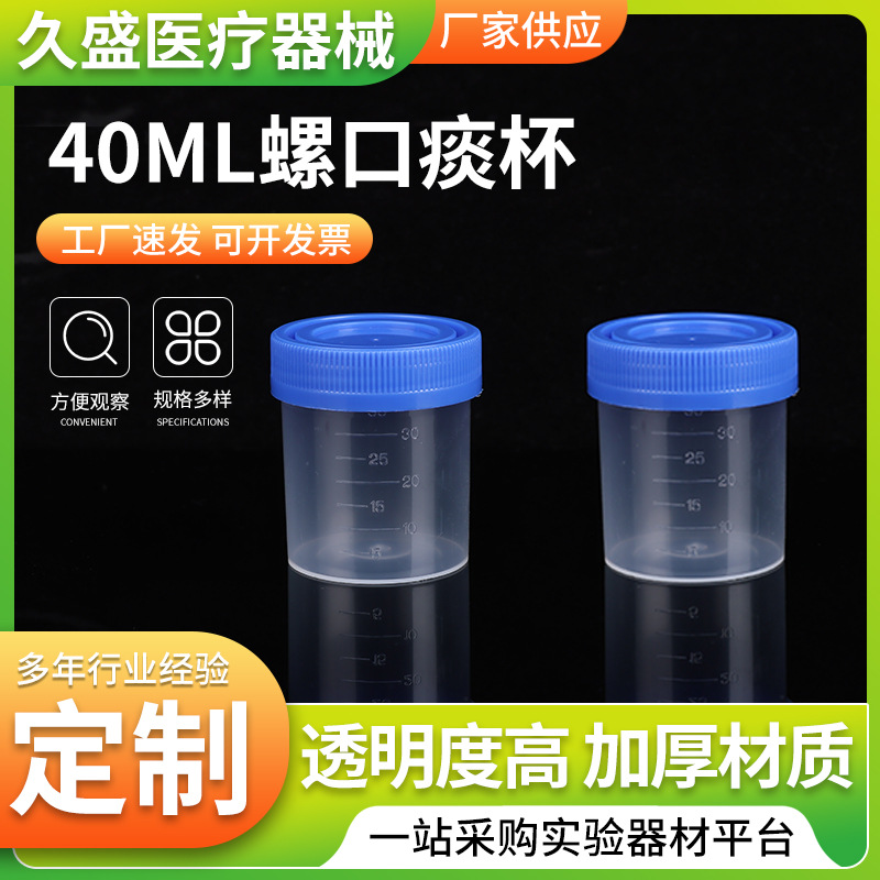 使い捨てスケール付き螺旋口痰カップ実験器材スケール付きサンプリングカップサンプルカップ40ml螺旋口痰カップ
