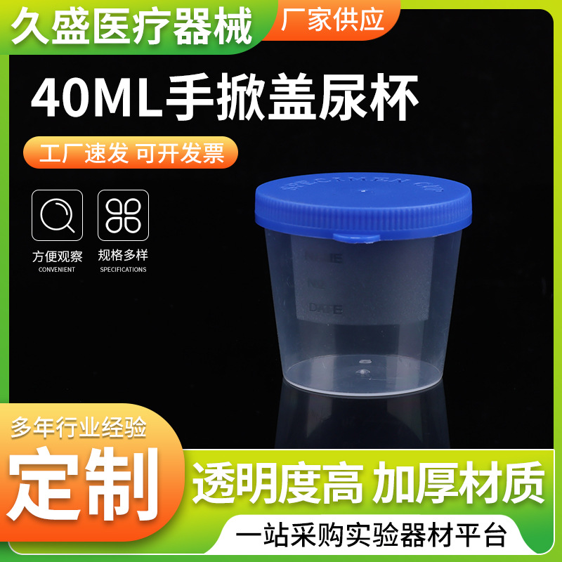使い捨てプラスチック手蓋尿カップ実験室透明帯スケール採集瓶40ml手蓋尿カップ