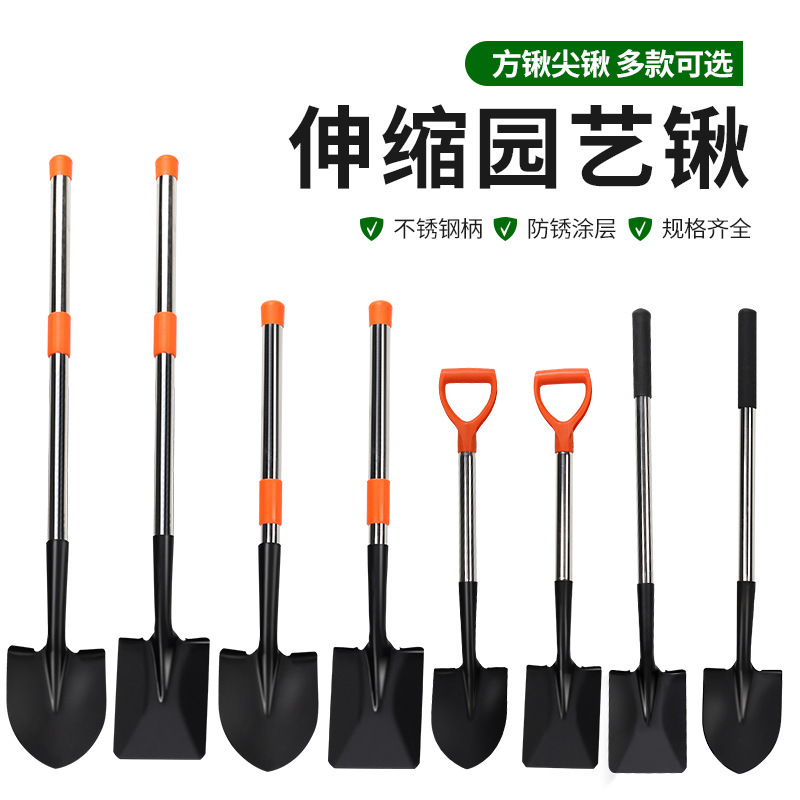 ステンレス伸縮シャベル全鋼厚手屋外園芸車載オフロードシャベル雪シャベル車載家庭用