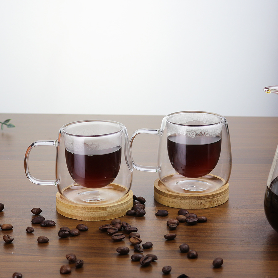 越境耐熱グラス高ホウ素シリコン二層創意ホテル断熱透明木托コーヒーマグカップ80ml