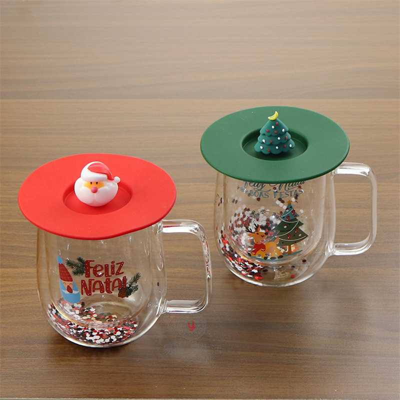 高ホウ素シリコンガラスクリスマス二重カップは熱帯を隔ててシリコン蓋のコップを高顔値雪だるまガラスコーヒーカップにします。
