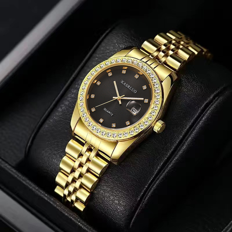 腕時計 メンズ ダイヤモンド付き カップル スチールバンド カレンダー 学生 大人 全自動 クォーツ時計 金属スケール 大きな文字盤