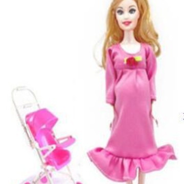 妊婦人形 + ベビーカー、大腹人形、エナメル付き赤ちゃん人形133g