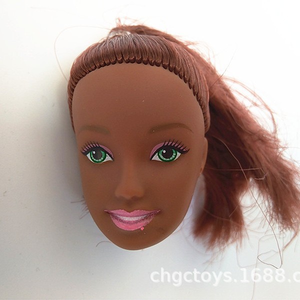 アフリカの黒い子供の頭の濃い茶色の人形のばら積みの頭は30cmの高さの子供の体の9gに適します。