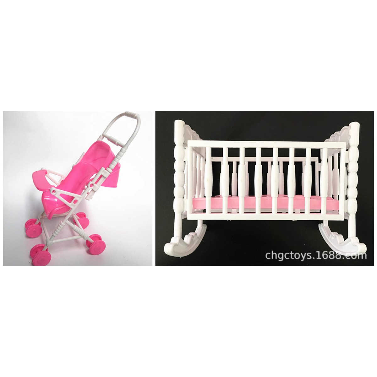 5種類の人形bbカート + ロッキングベッドセット肥童公仔ベッド部品ベビーベッドプラスチック玩具ベッド123g