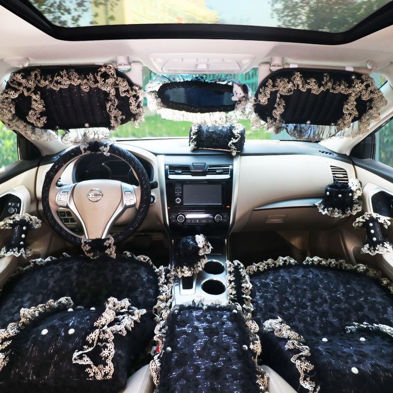 レースの車の室内装飾ギアカバー、ショルダーパッド、バックミラーカバー、アームレストボックスパッド、エレガントなスタイル