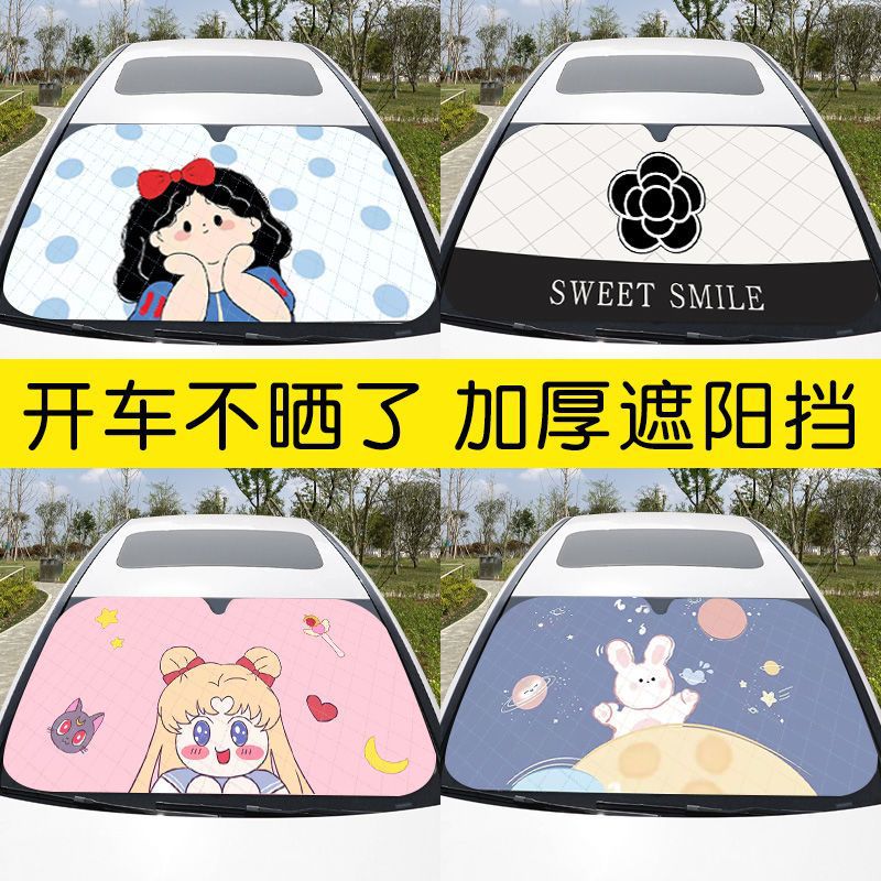 車のサンバイザー、サンシェード、フロントサンシェード、漫画のかわいい吸盤、断熱、日焼け止め、ユニバーサル折りたたみサンシェード、車内用