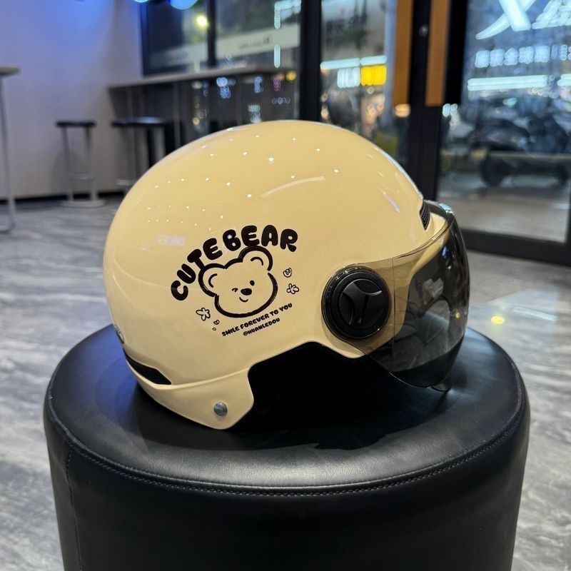 さまざまなかわいいクマ 3c 電気自動車ヘルメット夏のオートバイの男性と女性の安全ヘルメットハーフヘルメット日焼け止め四季新しい国家標準