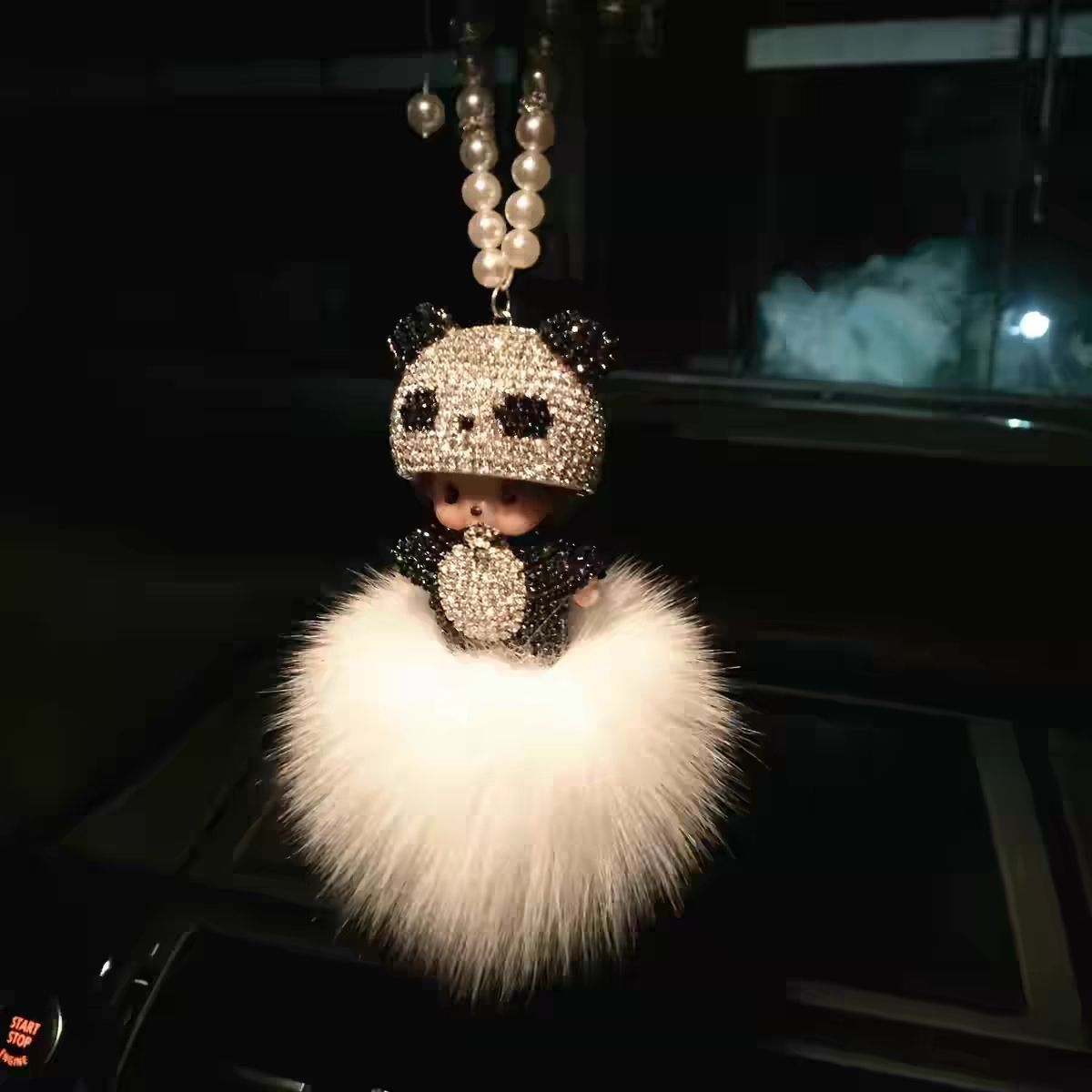 パンダの奇奇奇自動車のバックミラーのペンダントは水晶を飾ります。