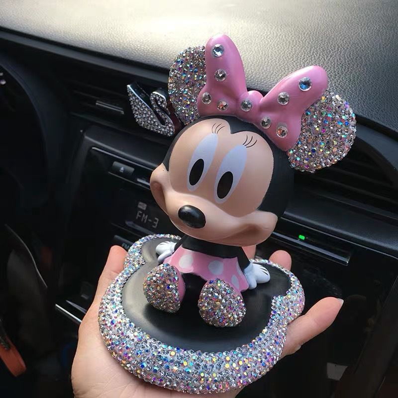 車の装飾、キュートでクリエイティブなパーソナライズされた車のインテリアアクセサリー、車用品、ダイヤモンドがちりばめられたミッキーの装飾品、首振り装飾品
