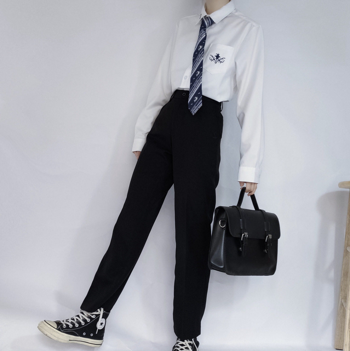 【顔沐渓】ズボンオリジナルjk/dk制服刺繍ズボン黒ストレートカジュアルズボン学院長ズボン