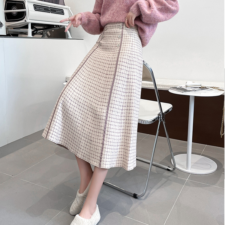 2022新型秋装韓国版復古格子縞a字ニットスカート