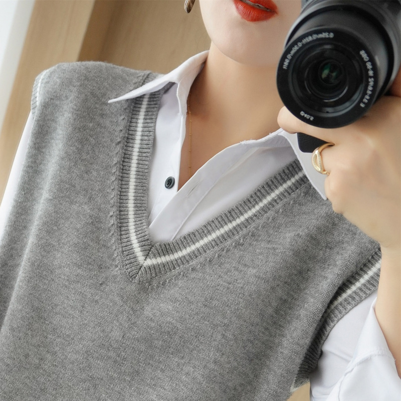 色合わせベスト女性vネック小香風秋冬新作学院風セーター