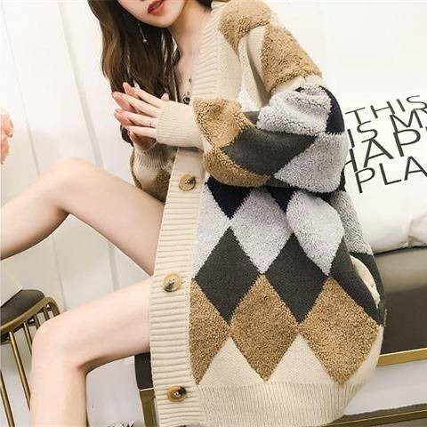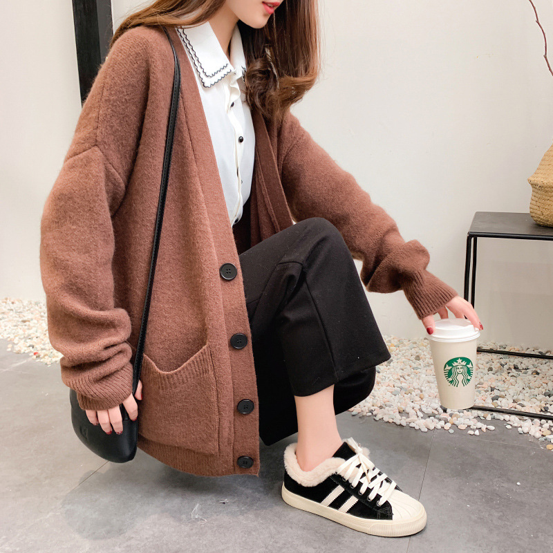 ネットの赤いタイプの2022新型の婦人服のゆったりしているセーターのコートの怠惰な風のカーディガンの女性の秋の中で長いタイプのニットのファッション