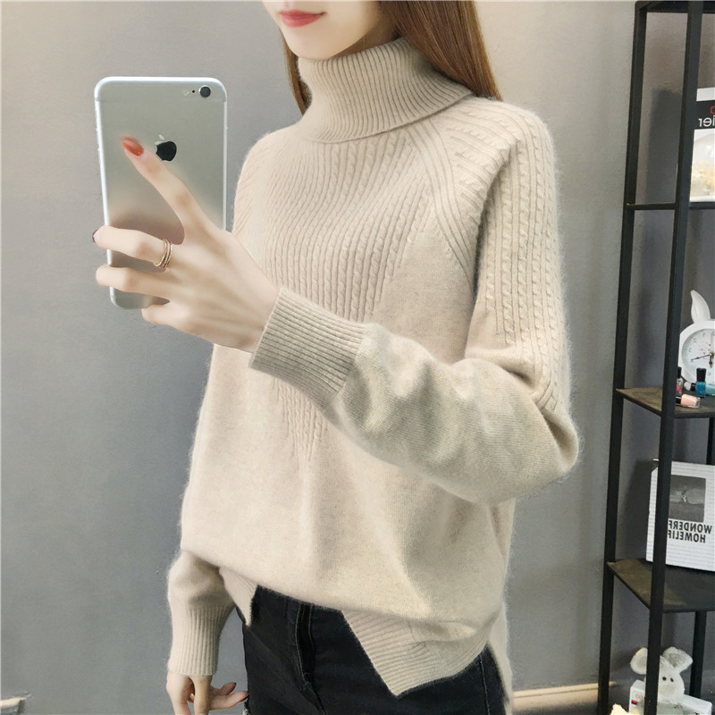 高襟の底のセーターの女性の冬の新型の2022婦人服の麻の花のゆったりした純色のニットの女性の中で上着の女性を掛けます。