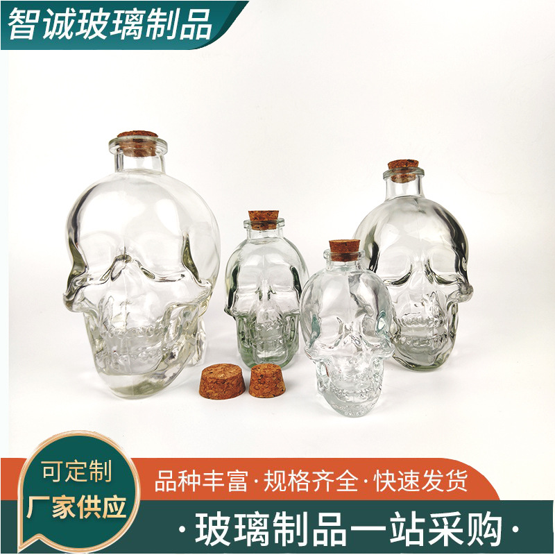 クリエイティブクリスタルスカル透明ボトル超厚い底分酒器木栓ウイスキーカクテルワインウォッカ
