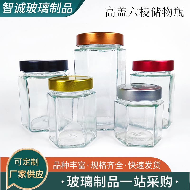 高蓋六稜漬物瓶透明ジャム辛い味噌ガラス瓶六角蜂蜜瓶缶詰瓶台所貯蔵タンク