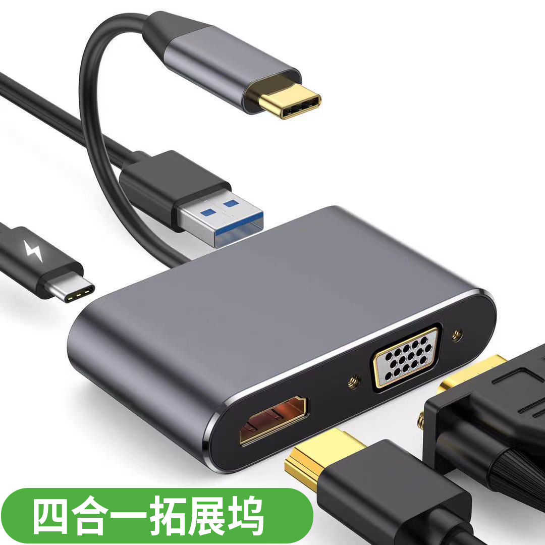 Typec変換hdmi vga四合一コンピュータタブレット変換ケーブルusbマルチポート拡張器拡張ドックtype-c