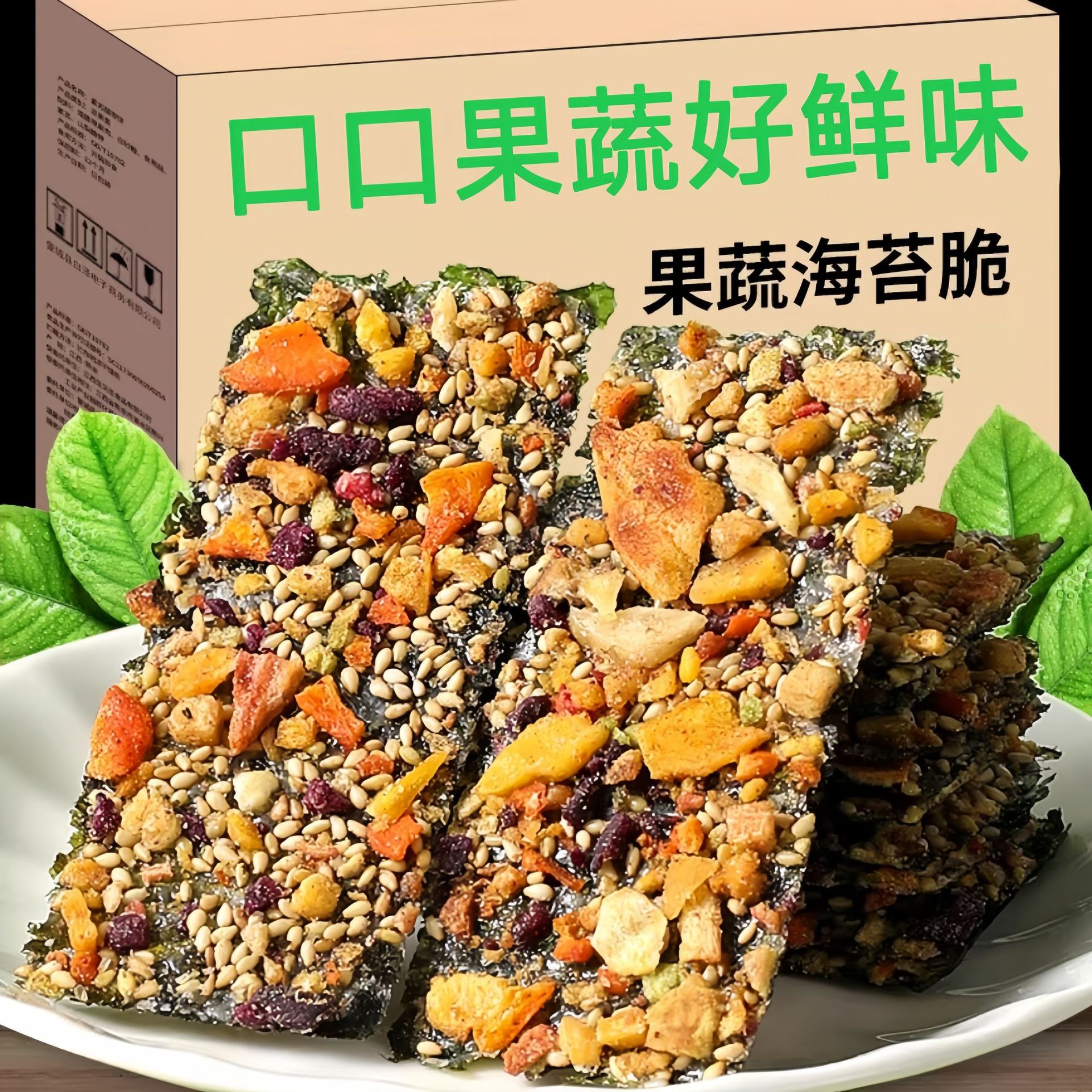 果物と野菜、海苔、クリスピーシーズンズ、ナッツ、野菜、無添加スナック、クリスピービビンバ、オフィスワーカーのための栄養価の高いスナック