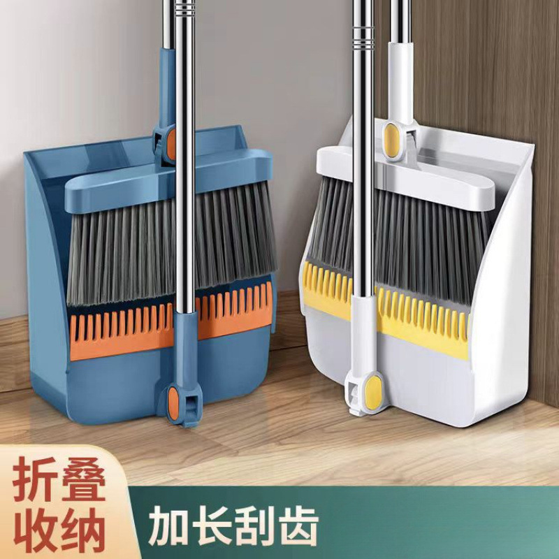 新しいタイプの箒と箕のセットの家庭用の柔らかい毛の箒のプラスチックのステンレスの箒の長い歯の組み合わせの箒の卸売り
