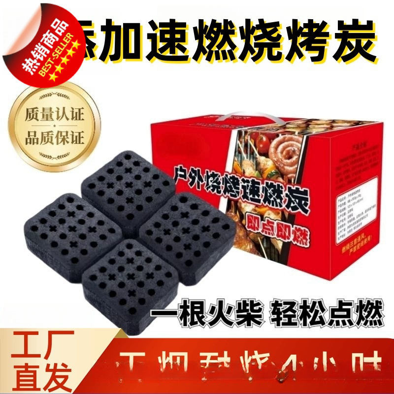 バーベキュー炭屋外速燃性炭角型フルーツ木炭卸売無煙炭屋内特殊加熱茶炭可燃性炭