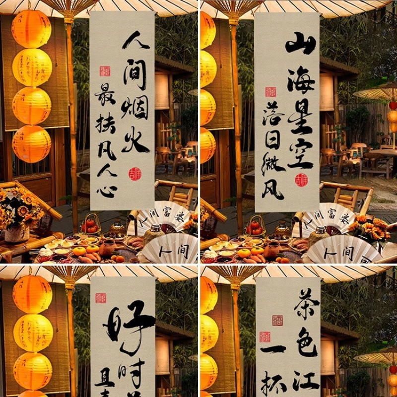 新型の屋外の書道はストーブを囲んでお茶を煮て背景の布の雰囲気感を飾ります。