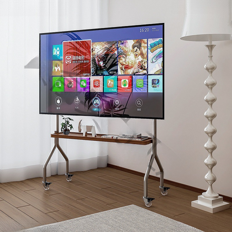 ステンレス鋼の可動テレビフロアスタンドハンガー、車輪付きの43から80inchに適していますリビングルームと寝室のカート