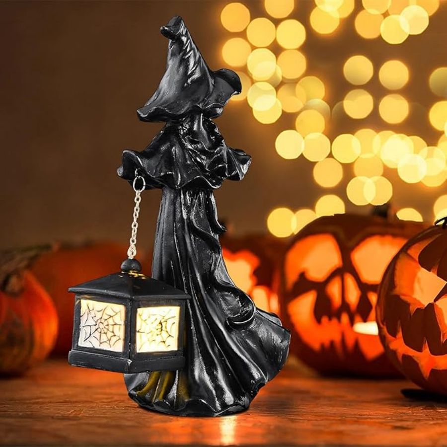 国境を越えた新しい樹脂の新しい魔女はろうそくの明かりをつけて提灯をつけた地獄の使者ハロウィーンの装飾を飾った