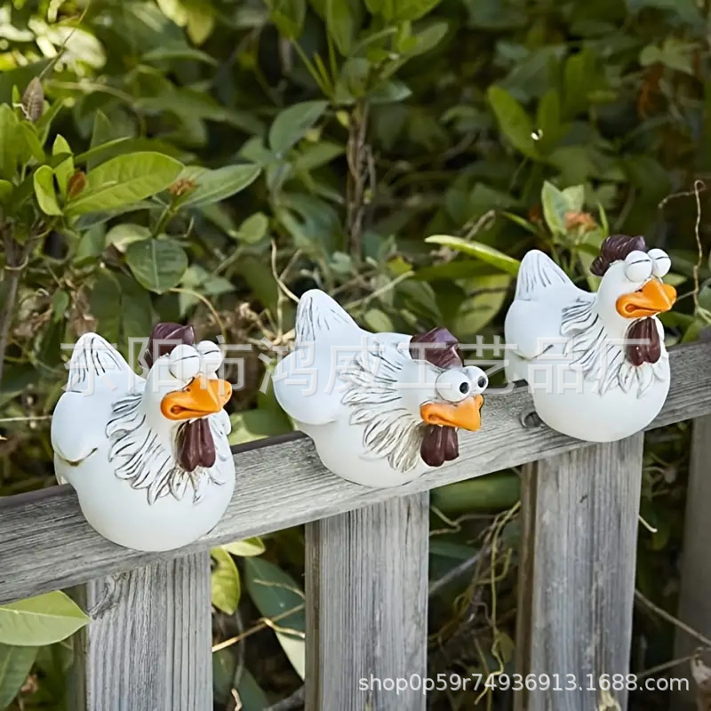 クロスボーダーの新型樹脂工芸品の雌鶏は大きい目の鶏の樹脂を挟んで鶏の源の工場を並べて直接に柵の庭を売ります。