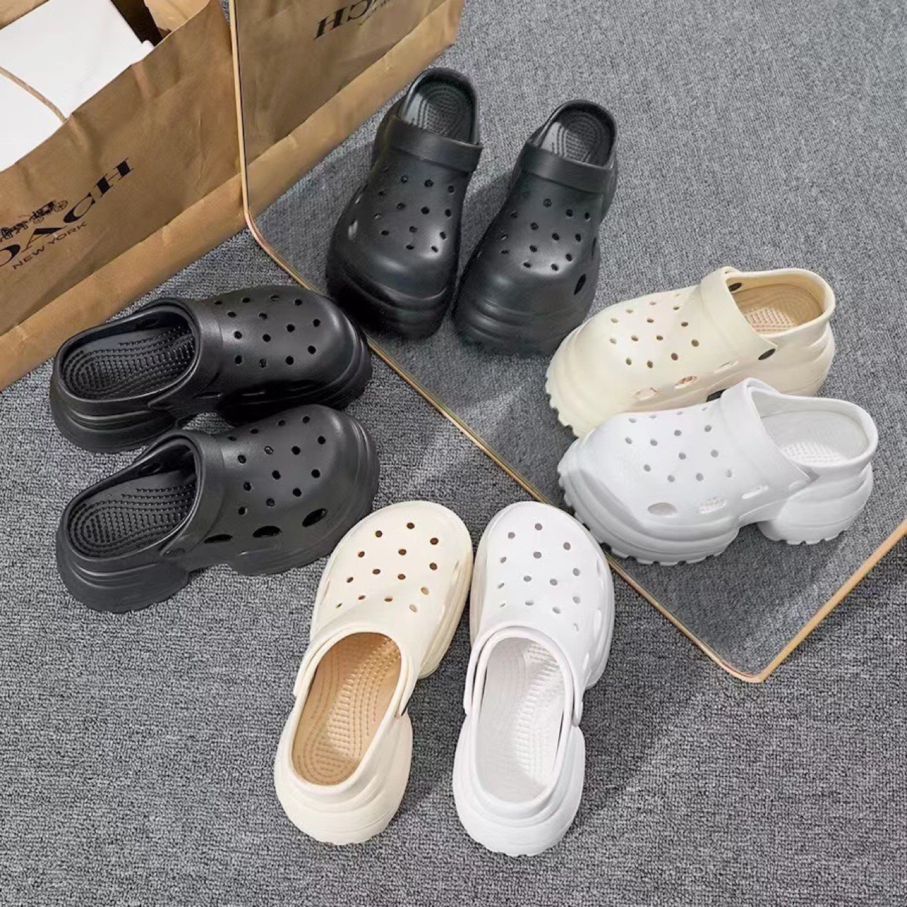 ハイヒールの穴の靴の女性の夏の外は厚い底を着て糞を踏んで感じます。