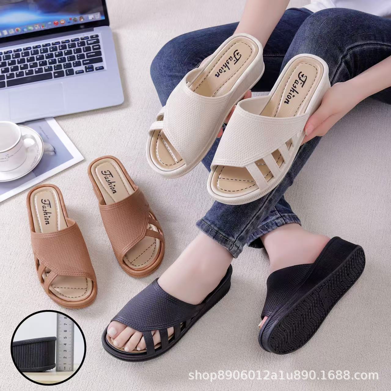 新商品の包頭スリッパの女性は夏に透かし彫りの平底を着て、涼しくて柔らかい底の滑り止めの妊婦のお母さんの広場のダンスの防水防止をします。
